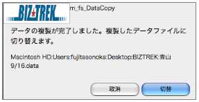 4.複製したデータに切替える場合→「複製」、使用中のデータに戻る場合→「取消」ボタンをクリックします。
