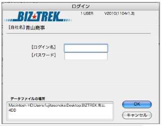 BIZTREK BackOfficeマニュアル●パスワード入力画面を表示します。入力するパスワードの入力レベルにより表示するメニューが変更されます。 他のメニューを起動していると、ユーザーの切替は出来ません。 起動中の全てのメニュー画面を閉じてから切替作業を行います。